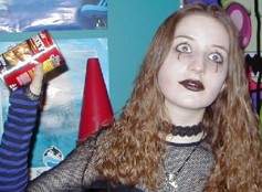 -Directions-1. Gypsy Eyes Courtesy Crayola: You'll need Crayola Gillter Glue A cheap little gem spirit glue, crazy glue, liquid latex, etc.(optional) pixie dust(optional) eyeliner, eye shadow, mascara, etc. a. Apply your eye liner, eye shadow, mascara, etc. however you want. b. Choose a color of Crayola Glitter Glue you like best. DON'T squeeze very hard, only a small amount of pressure is needed. Be VERY CAREFUL not to get it in your eyes. Dab little dots about your eyebrow. You can also squeeze some glue onto a paper plate and take a cuticle stick, tooth pick, small paint brush, etc. to dab the dots on. c. Rub a small amount of pixie dust were you plan on the putting the gem. d. Choose the gem want to use, you can either apply this to your face with spirit glue, crazy glue, liquid latex, eyelash glue, etc. or you can use a small dab of the glitter glue on the back of the gem. The glitter glue does not last as long as the other mentioned products, but it works for a few hours. 2. Blood Widow You'll need Black eyeliner(liquid or pencil) Red lip or eye liner(liquid or pencil) Manic Panic Glamour Eyes in Starry Night Eyelash adhesive small spider gem a.line your eyes with a thin layer of black liner, add a thicker layer just about that of red liner, add another small line of black again. b. apply Glamour Strip c. apply spider in desired spot. 3. My "sad goth" make-up You'll need Light colored eye shadow, black eyeliner small tear shaped gem adhesive mascara q tips water hair spray A frown a. apply the light colored shadow to the crease of your eye. b. apply a thick layer of black eyeliner(both over and under eye) c. apply mascara d. draw line down from center or eye, thicken, make gaps or bumps in line. e. take wet q tip and roll over bottom of eye eyeliner and the line from the bottom of your eye. Redraw, rewet, etc. f. dampen another q tip with hair spray and roll it over the design to ensure it sticks. g. apply gen wherever you please. 4. Untitled You'll need Crayola Gillter Glue eyeliner silver eye shadow a. apply silver eye shadow a little about the drease, tapered off at the out side of your eye. b. apply eyeliner, sort of in cat style makeup. c. under left eye dab three dots of crayola glitter glue, useing either a small brush, a toothpick, or gently squeezing the bottle. d. above your right brow dab three similar dots of glitter glue. e. above dots draw a line, about as long as your brow of glitter glue. Now go out and scare the hell out of a complete stranger! jagged_lil_loser | |||