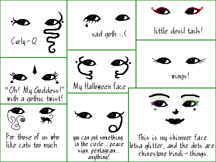 The lovely Lady Hydra had this to say: Your site has been a great help for me with designing my eyes for halloween. So, I've decided to contribute my own design for you to put up. (which, by the way was the entire prupose of this, for both myself and others to be encouraged to experiment more because I was falling into a rut), and this to add: | |||