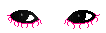 thin tipped pink marker and line below bottom lashes.